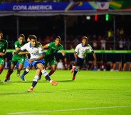 Players of Cruzeiro and Atletico Mineiro shake hands (Pedro Vilela/Getty)