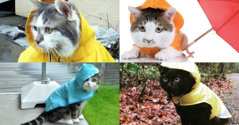 Other social media users have posted photos of their own cats wearing waterproof jackets. (johnwilmeswords/Twitter)