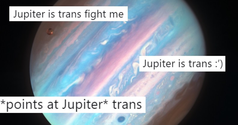 The swathes of colour on and around the planet match the colours of the trans flag, and even if they do not quite appear in the right order, the striking similarity has led people to claim Jupiter as a trans icon.