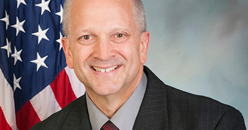 A Republican running for re-election has been blasted for putting out a leaflet accusing his gay Democratic opponent of being in the pocket of “liberal gay activists.”