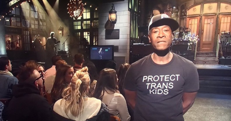 Don Cheadle wears ‘protect trans kids’ t-shirt on SNL