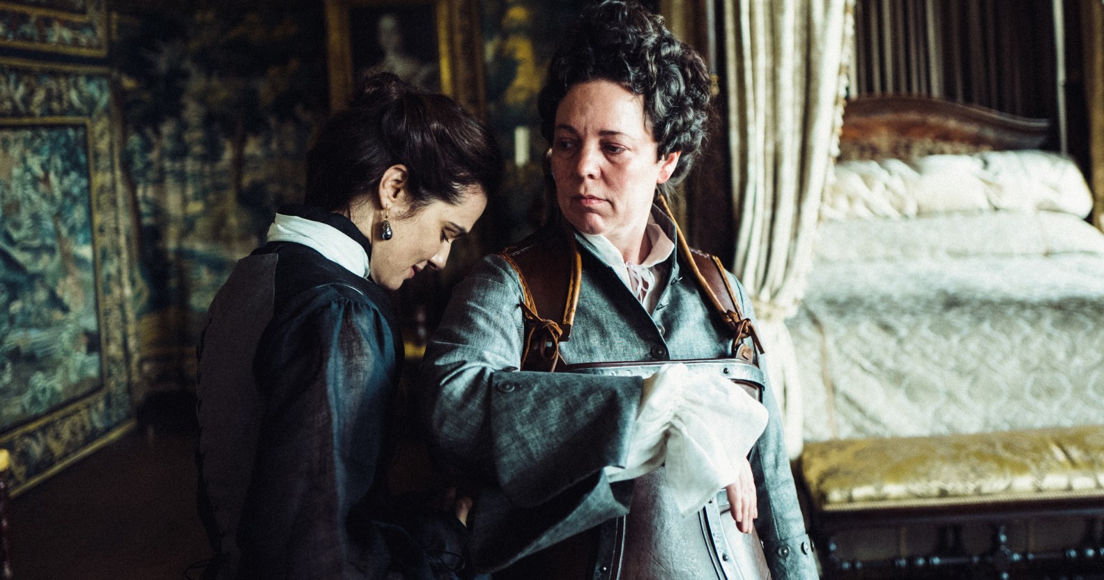 Oscars nominees Rachel Weisz and Olivia Colman in The Favourite. (Twentieth Century Fox)