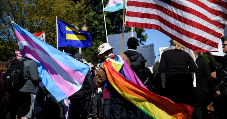 Activists for the LGBTQ community rally during a protest of the Trump administration October 22, 2018 in Washington, DC (BRENDAN SMIALOWSKI/AFP/Getty)