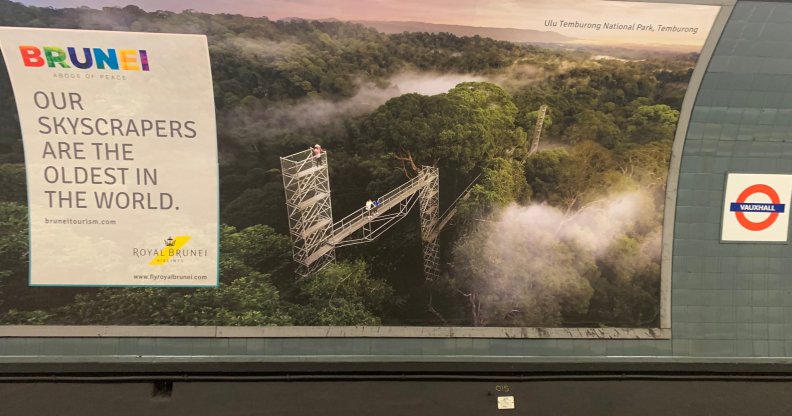 An advert promoting Brunei seen at the TfL station in Vauxhall, London, in March 2019. (NobleGay/Twitter)