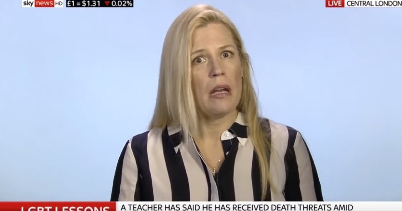 Caroline Farrow appearing on Sky News to oppose LGBT+ inclusive education