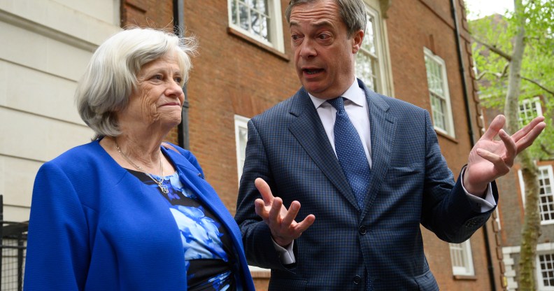 Ann Widdecombe with Brexit Party leader Nigel Farage. (Leon Neal/Getty)]