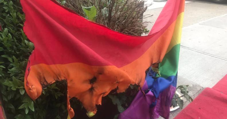 Two rainbow flags were deliberately set on fire outside an LGBT+ bar in New York on Friday evening (May 31), in what police are investigating as a possible hate crime.