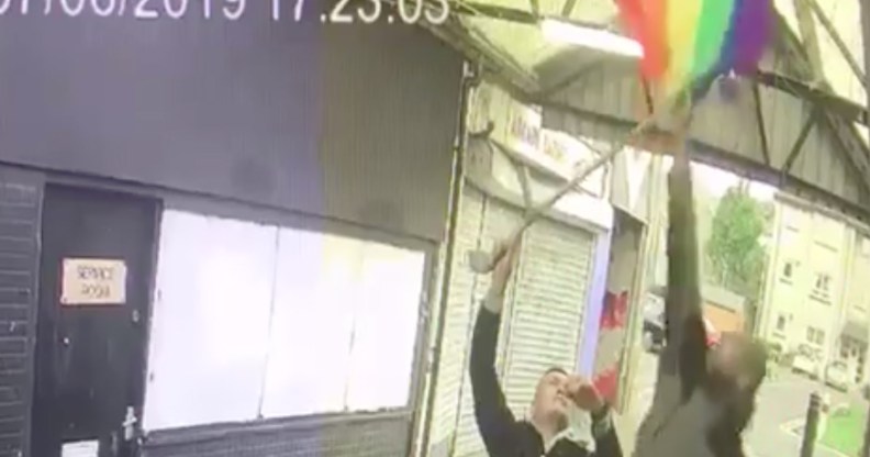 A shopping centre in Scotland has posted CCTV footage of vandals pulling down rainbow flags celebrating Pride month on not one, but two occasions.