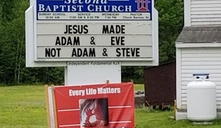 Anti-gay sign outside Maine church: ‘Adam and Eve, not Adam and Steve’