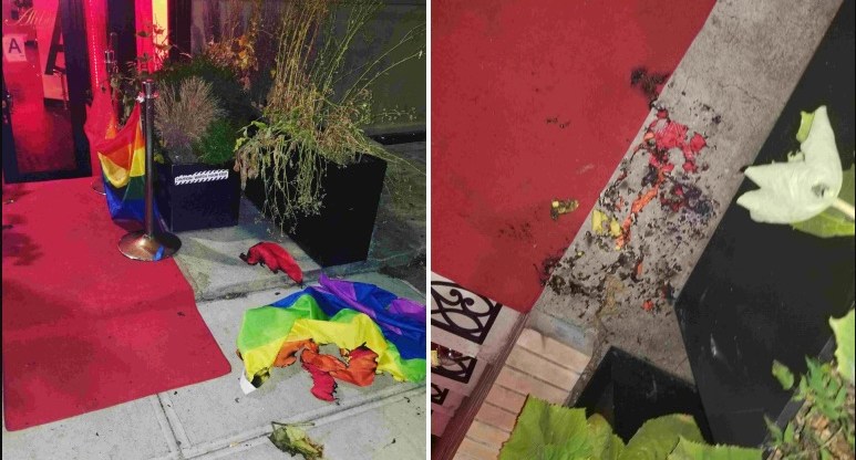 The rainbow flags were found burning at the entrance of Alibi Lounge nightclub in Harlem, New York. The club’s owner, Alexi Minko, said he was “in shock” to see it happen a second time, and questioned the timing of the incidents.