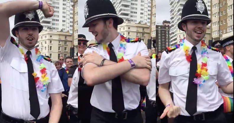 A police officer wowed crowds at Brighton Pride as he served full choreography while lip-syncing to Steps’ ‘Scared of the Dark’.