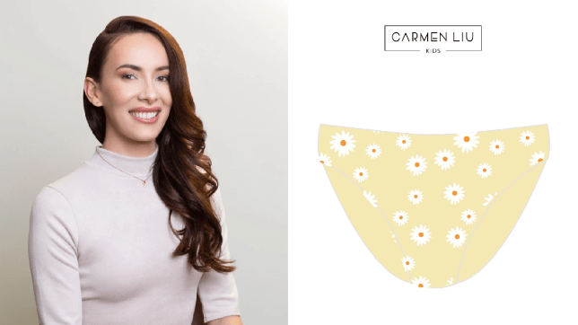 Carmen Liu and the children’s underwear she designed. (Carmen Liu)