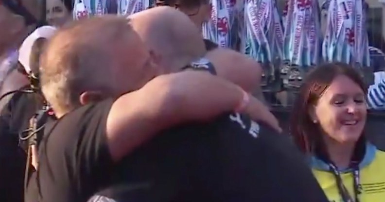 Hours after revealing he has HIV, an emotional Gareth Thomas completes the Ironman triathlon and runs straight for a hug from husband Stephen. https://t.co/NiORdACDOk pic.twitter.com/8GBRtcOfIM