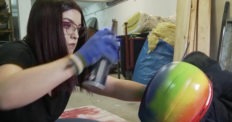 One LGBT+ rights activist in Poland is spray painting hard hats with the Pride flag in a bid to keep her and other campaigners safe.