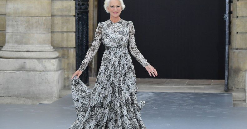 Helen Mirren walks the runway at Paris Fashion Week, 2019. (Dominique Charriau/WireImage)
