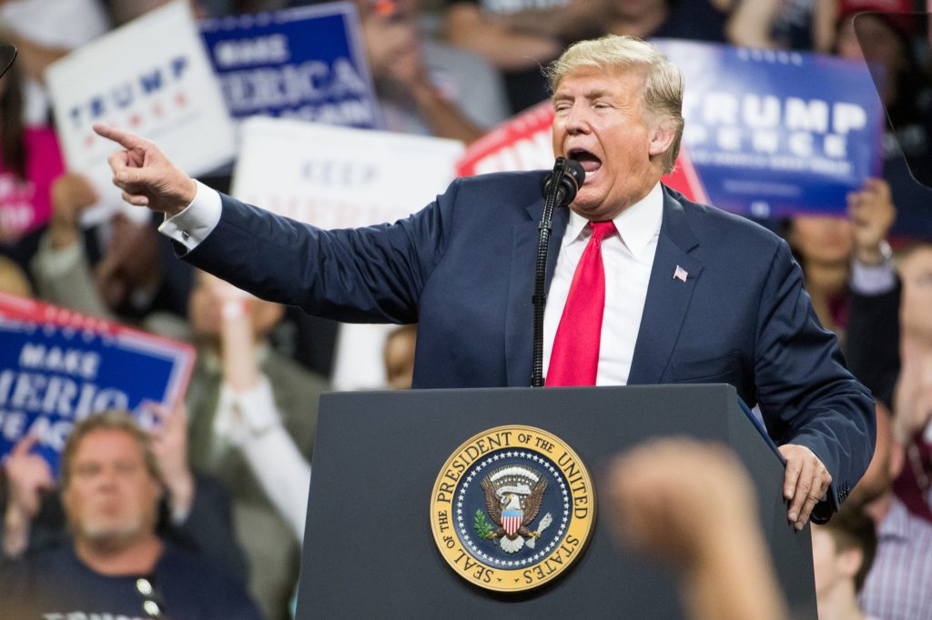 President Donald Trump speaks during campaign MAGA (Make America Great Again) rally at Southern New Hampshire University Arena on August 15, 2019. (Lev Radin/Anadolu Agency via Getty Images)