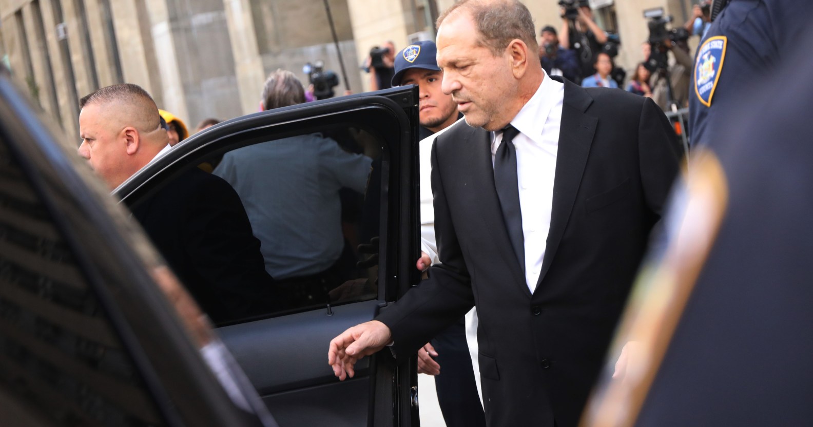 Harvey Weinstein exits court after an arraignment over a new indictment for sexual assault on August 26, 2019 in New York. Weinstein pleaded not guilty. (Spencer Platt/Getty Images)