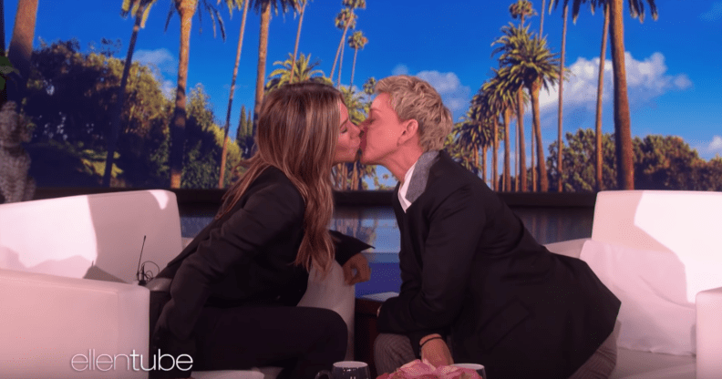 Jennifer Aniston just gave Ellen DeGeneres a kiss on her ‘soft lips’