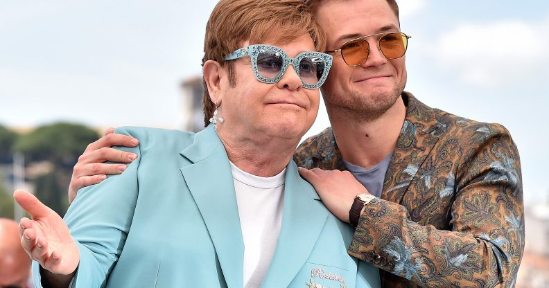 CANNES, FRANCE – MAY 16: (EDITORS NOTE: Retransmission with alternate crop.) Sir Elton John and Taron Egerton attend the photocall for “Rocketman” during the 72nd annual Cannes Film Festival on May 16, 2019 in Cannes, France. (Photo by Dominique Charriau/WireImage)