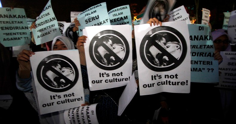 A protest against a concert by the openly gay US singer Adam Lambert in 2010 in Kuala Lumpur, Malaysia. (Syamsul Bahri Muhammad/Getty)