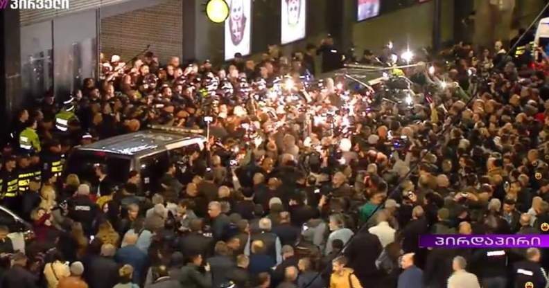 Several hundred protesters staged a furious demonstration outside Tbilisi’s Amirani Cinema on Friday, November 8, attempting to storm the theatre to stop the film being shown.