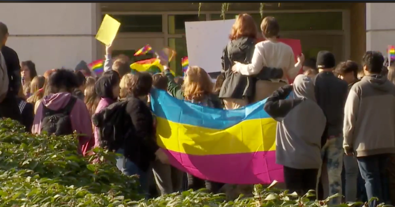 Students at West Linn High School protesting for LGBT+ rights (KATU2/Facebook)