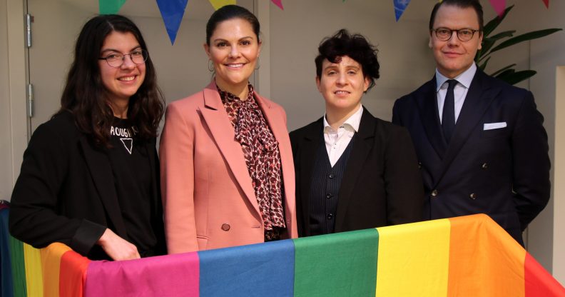 Crown Princess Victoria and her husband Prince Daniel with RFSL Youth president Jêran Rostam and RFSL president Deidre Palacios (RFSL)