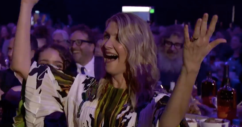 The song then turns into a soulful number as singer Alex Newell Āoncè came on stage and belted the actress’s name. Dern waved her hands in the seat and laughed alongside her fellow actors, clearly revelling in the hilarious tribute.