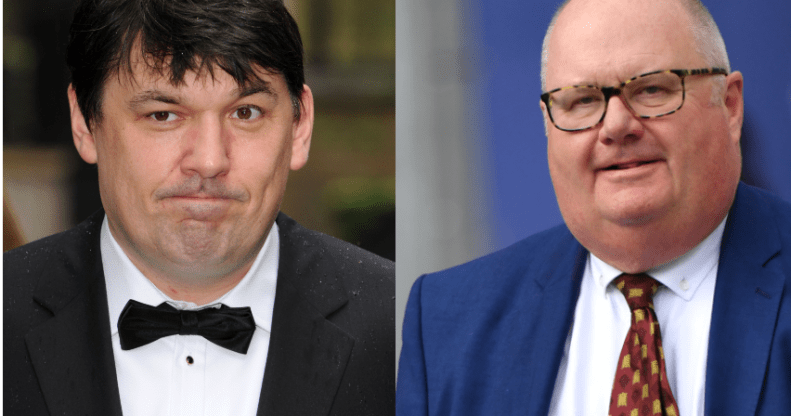 Graham Linehan (left) has had his comments condemned by Lord Eric Pickles (right). (Getty)