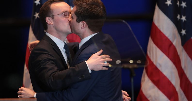 Pete Buttigieg kissed his husband Chasten as he announced he had dropped out of the Democratic presidential race. (Scott Olson/Getty)