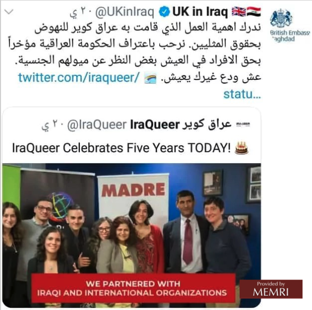 MEMRI noted that the Iraqi government issued no denial or confirmation on whether it has recognised the rights of the LGBT+ community.
