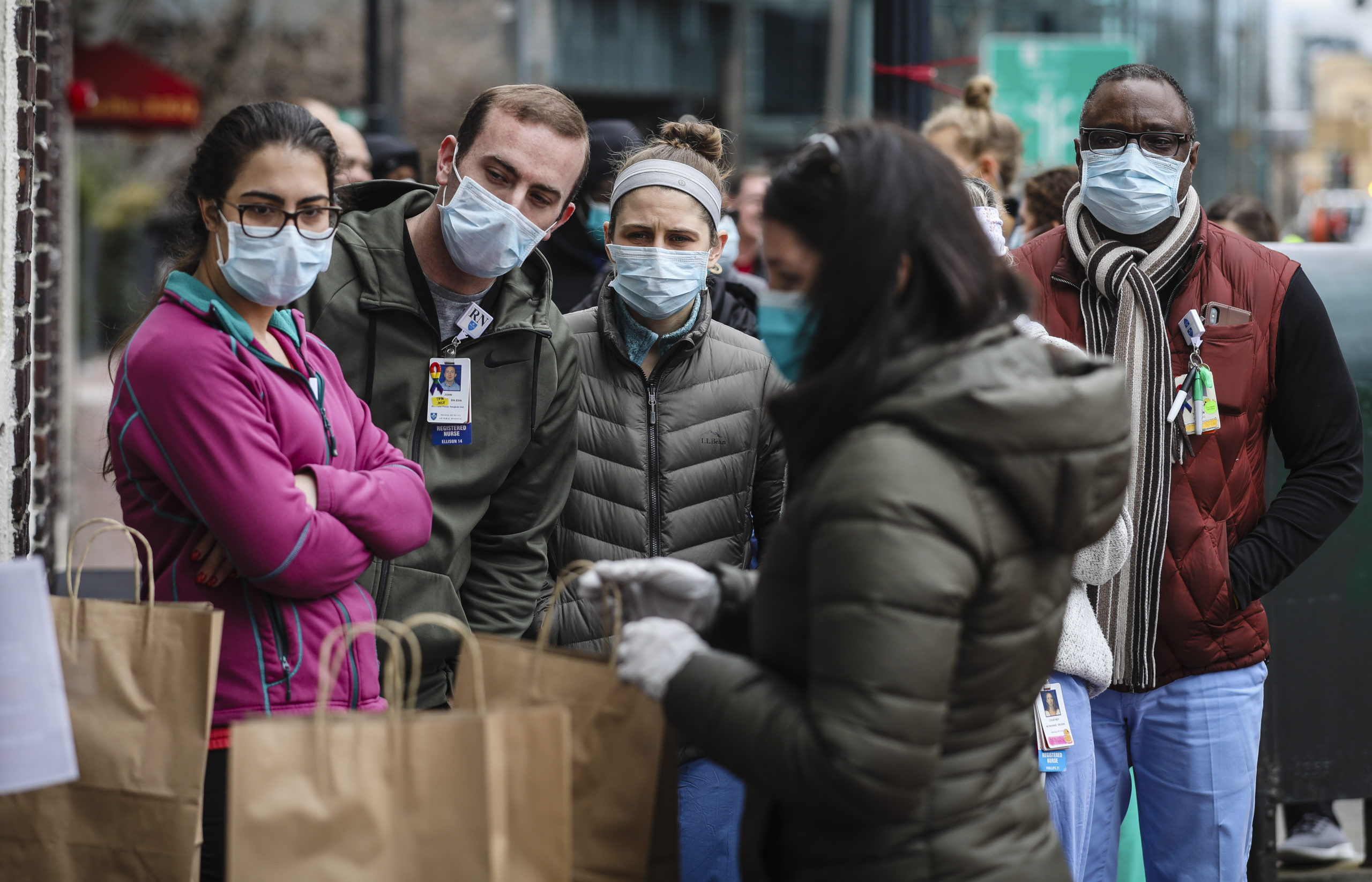 A Boston restaurant handing out free food to hospital staff battling the coronavirus (Erin Clark/The Boston Globe/Getty)
