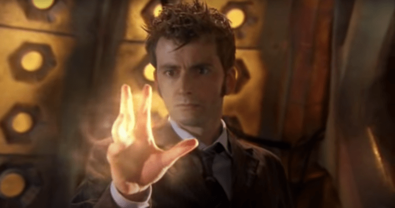 The episode sees the tenth Doctor pour his regeneration energy into a ‘handy’ DNA-matching receptacle – his previously severed hand.