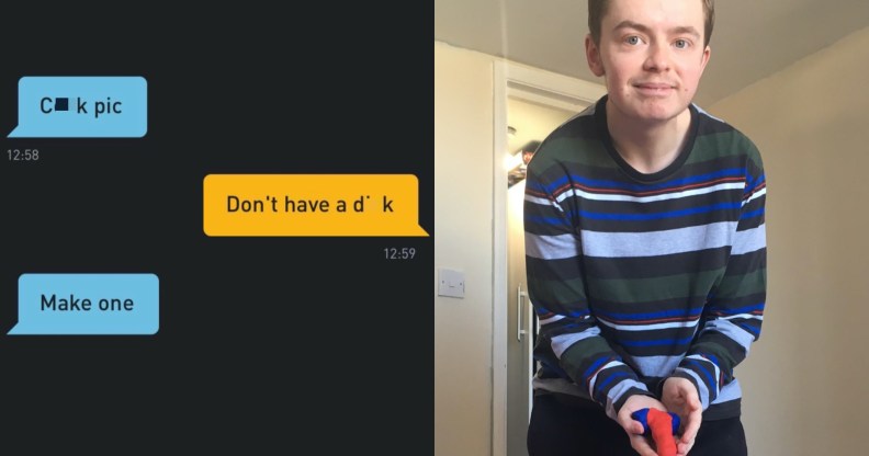 A Grindr letch asked this trans guy to ‘make a d**k’ before he sent a nude. But it wasn’t quite what he was looking for
