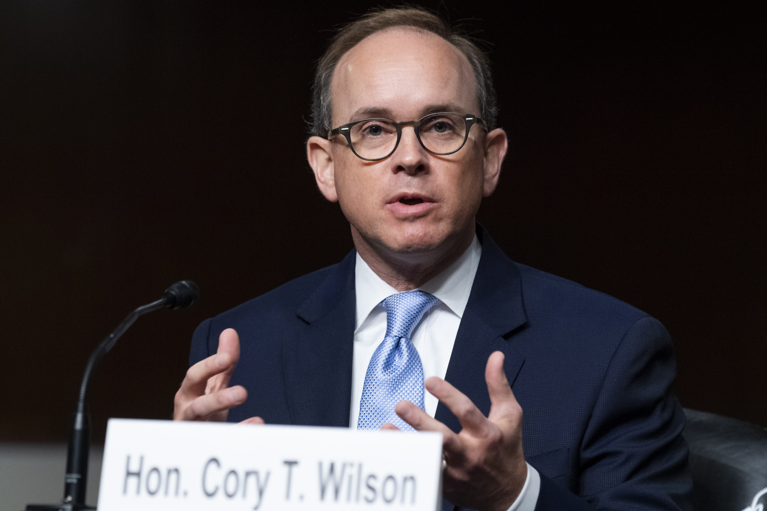 Cory Wilson testifies at his Senate Judiciary Committee confirmation hearing in on May 20, 2020. (Tom Williams/CQ-Roll Call, Inc/ Getty)