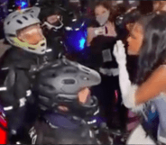 Another witness, Kim Simmons, can be heard in a video posted to Facebook claiming that police “jumped right out the car and started shooting”, again stating that the officers just “got out the car blasting”.