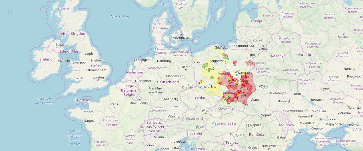The red area shows the municipalities in Poland that have signed the ‘LGBT-free’ pledge. (Atlas of Hate)