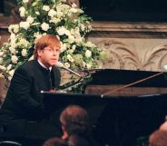 Elton John sings ‘Candle in the Wind’ at the funeral of Diana, Princess of Wales. (Anwar Hussein/Getty Images)