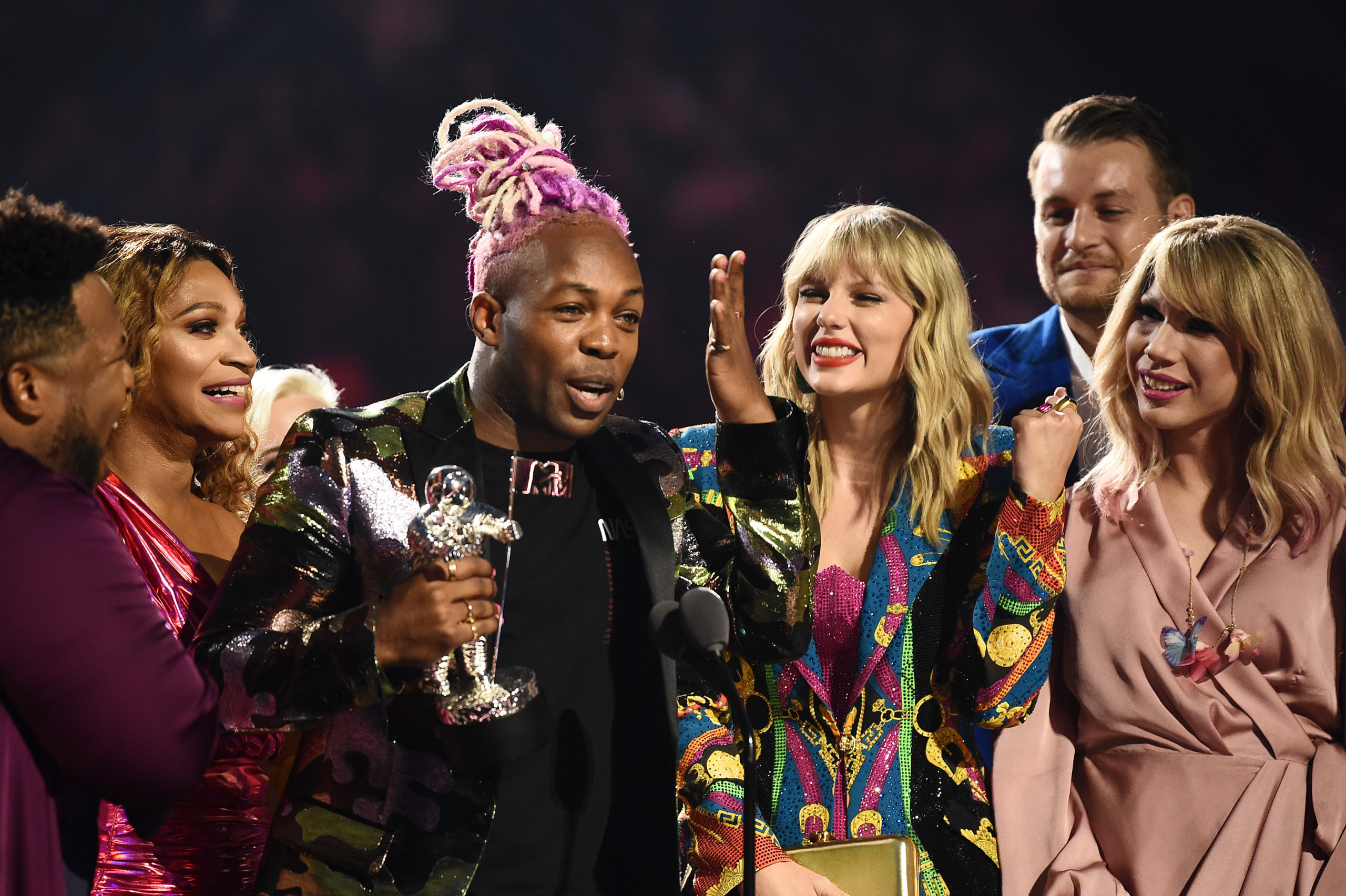 Todrick Hall and Taylor Swift receive the ‘Video For Good’ award at the 2019 MTV Video Music Awards (Dimitrios Kambouris/VMN19/Getty/MTV)