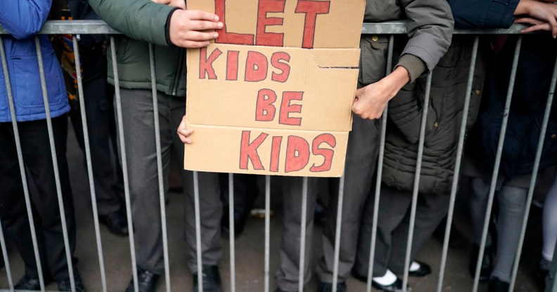 Protestors demonstrate against the LGBT-inclusive ‘No Outsiders’ programme at Parkfield Community School on March 21, 2019 in Birmingham. (Christopher Furlong/Getty)