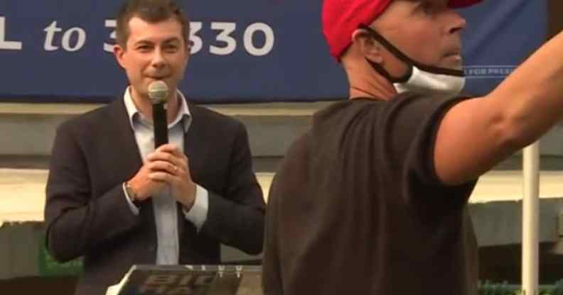 At St. Pete, the 38-year-old’s speech was interrupted when a man wearing a Make America Great Again mask and poorly-fitting cargo shorts attempted to hamper it, hurling abuse and pointing at Buttigieg as he live-streamed on his mobile.