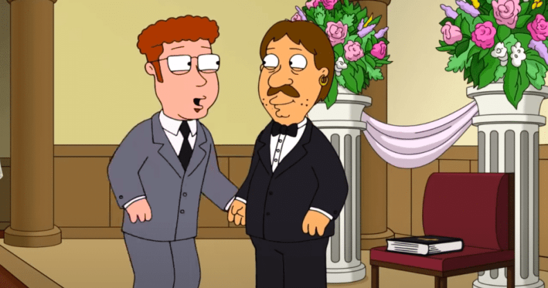 Bruce and Jeffrey finally tied the knot in Family Guy. (Fox)