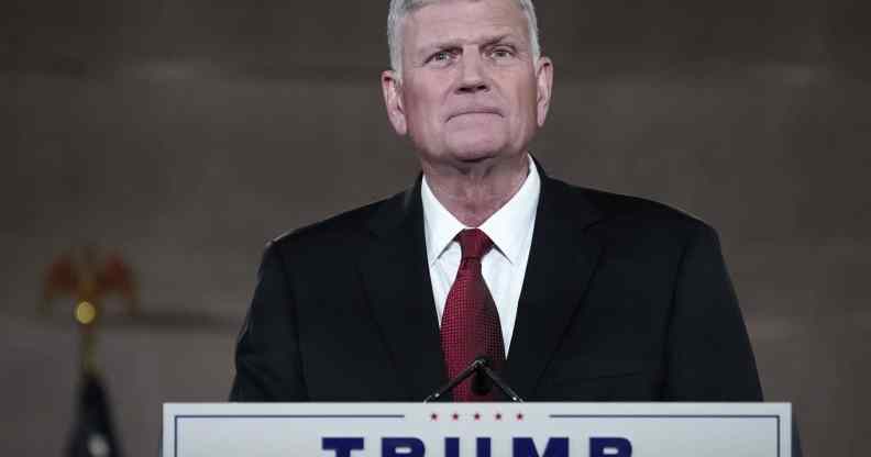 Trump ally and top Facebook influencer Franklin Graham has claimed that LGBT+ activists are working to control Joe Biden and push a “godless” agenda.