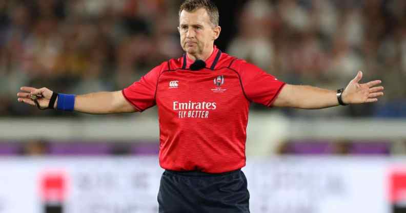 Rugby referee Nigel Owens spoke to PinkNews about his career and his charity work following his retirement from international refereeing. (Stu Forster/Getty)