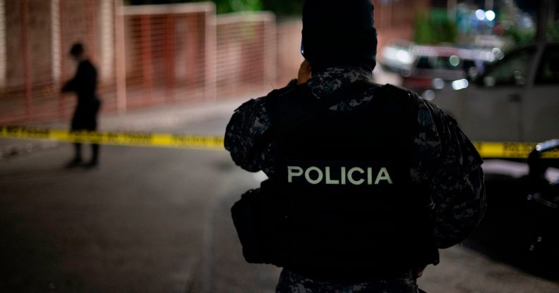 Mx M said police in El Salvador beat them and said ‘now we are going to show you how to be a man’. National civil police officers in San Salvador on October 11, 2020. (YURI CORTEZ/AFP via Getty Images)