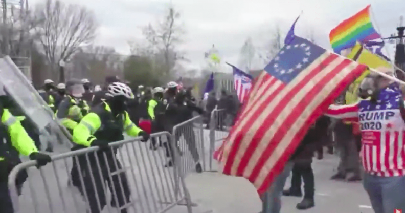 Gays for Trump waved rainbow Pride flags amid the Capitol riots as crowds of violent white supremacists laid siege to democracy yesterday (6 January) as the Electoral College votes were counted by Congress.