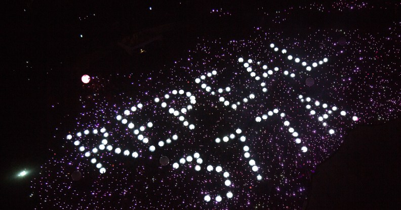LGBT+ people of Singapore form the words ‘Repeal 377A’ at the Pink Dot Rally on June 29, 2019. (Ore Huiying/Getty)