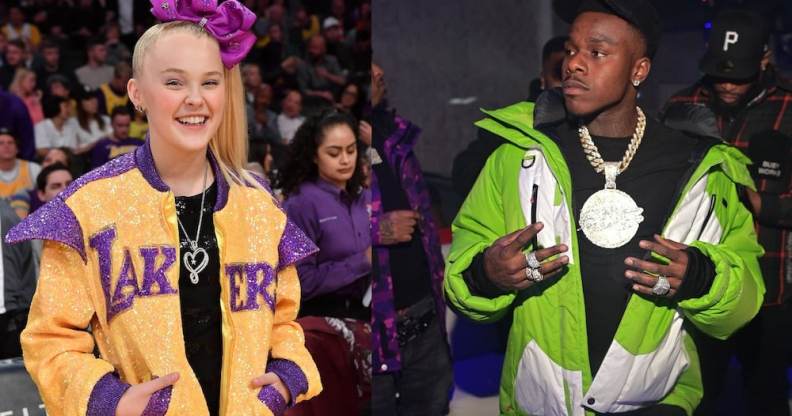 JoJo Siwa was trending on Twitter after angry fans thought rapper DaBaby called her a "b***h". (Getty/ Allen Berezovsky and WireImage/ Prince Williams)