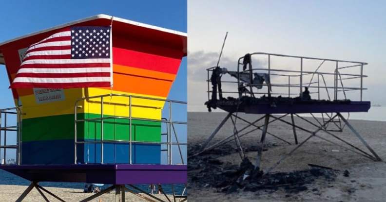 A rainbow-coloured ‘Pride’ lifeguard tower in Long Beach, Los Angeles has been burned down what the city’s mayor called “an act of hate.”