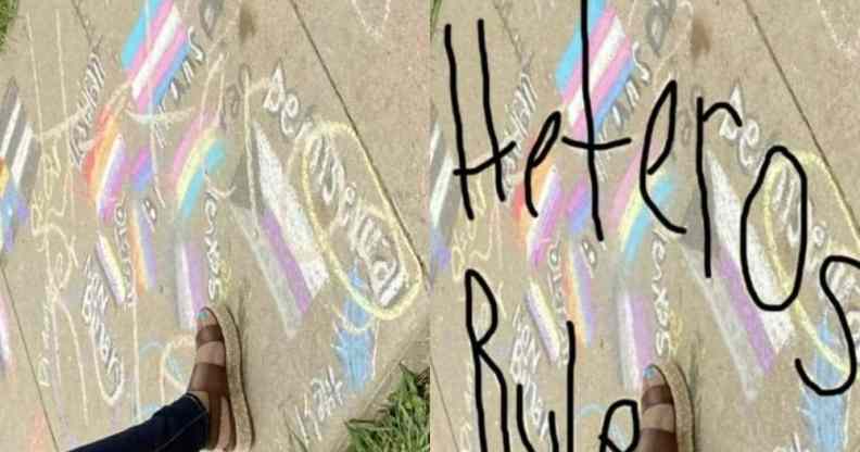 Furious teacher scrawls ‘heteros rule’ over students’ Pride flag chalk drawings